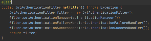 이렇게 설정을 하면 'authenticationmanager must be specified' 에러 없이 커스텀 필터가 등록이 잘 되는걸 볼 수 있다.