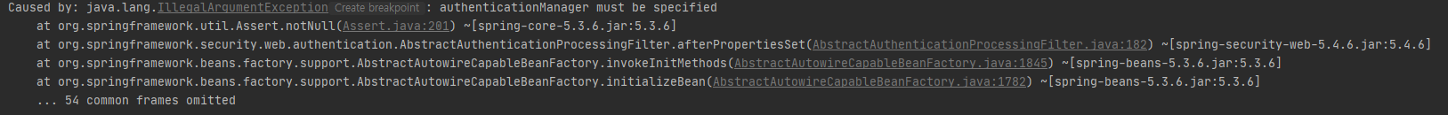 authenticationManager가 없기 때문에 발생하는 에러였다.