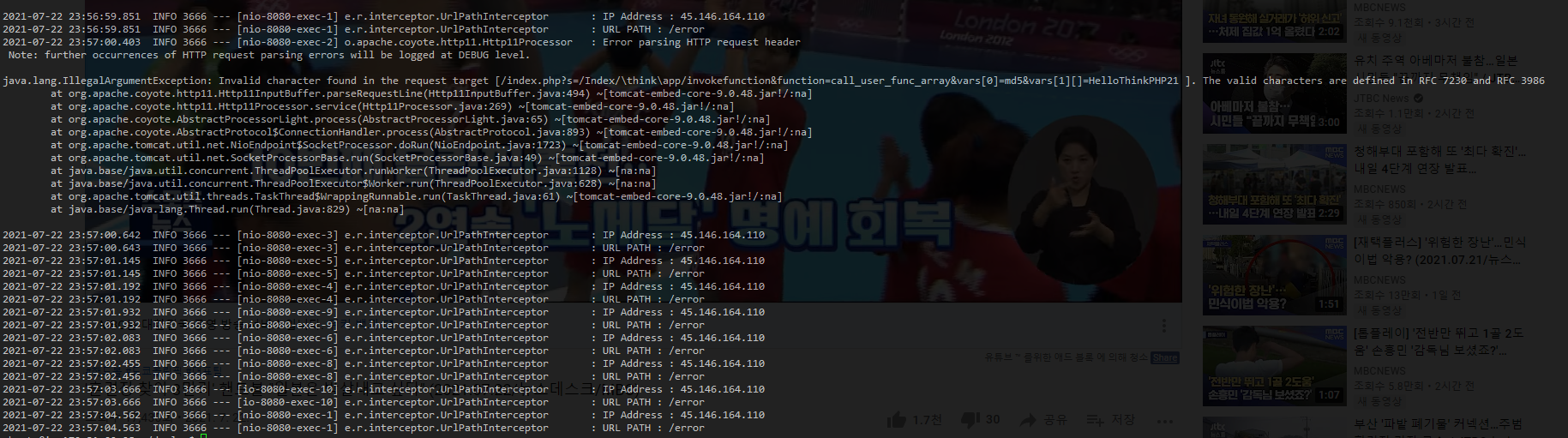 처음보는 IP에서 수상한 url 경로로 접속한 것이었다.