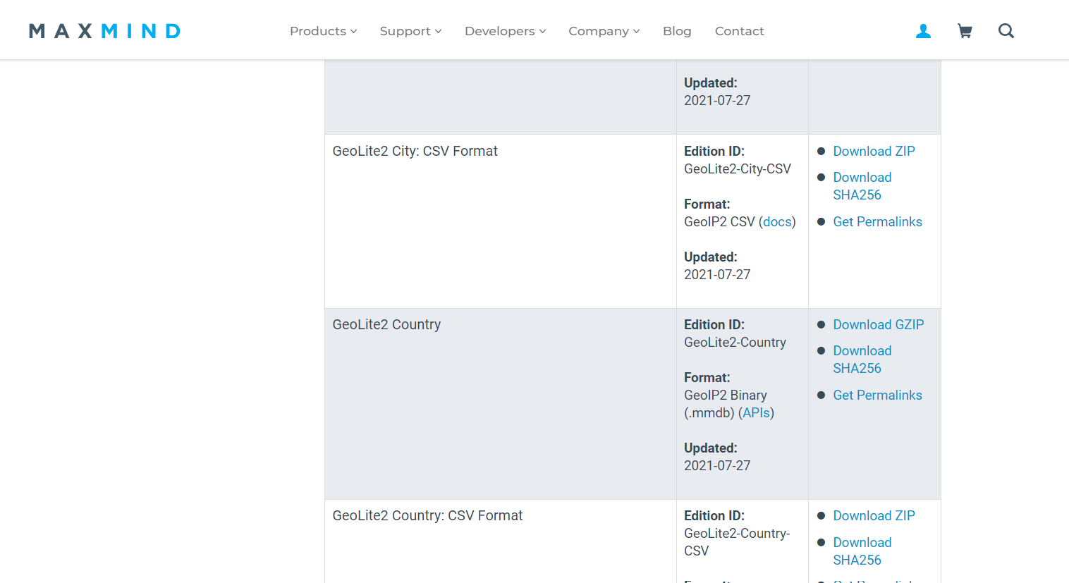스크롤을 내려서 GeoLite2 Country의 Download Gzip을 눌러 다운로드 받고 압축을 해제한다.