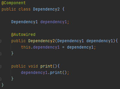 생성자 주입은 생성자를 사용하여 객체를 생성할때, 생성되는 객체가 사용하는 의존성을 생성자의 파라미터로 전달해주는 방식이다.