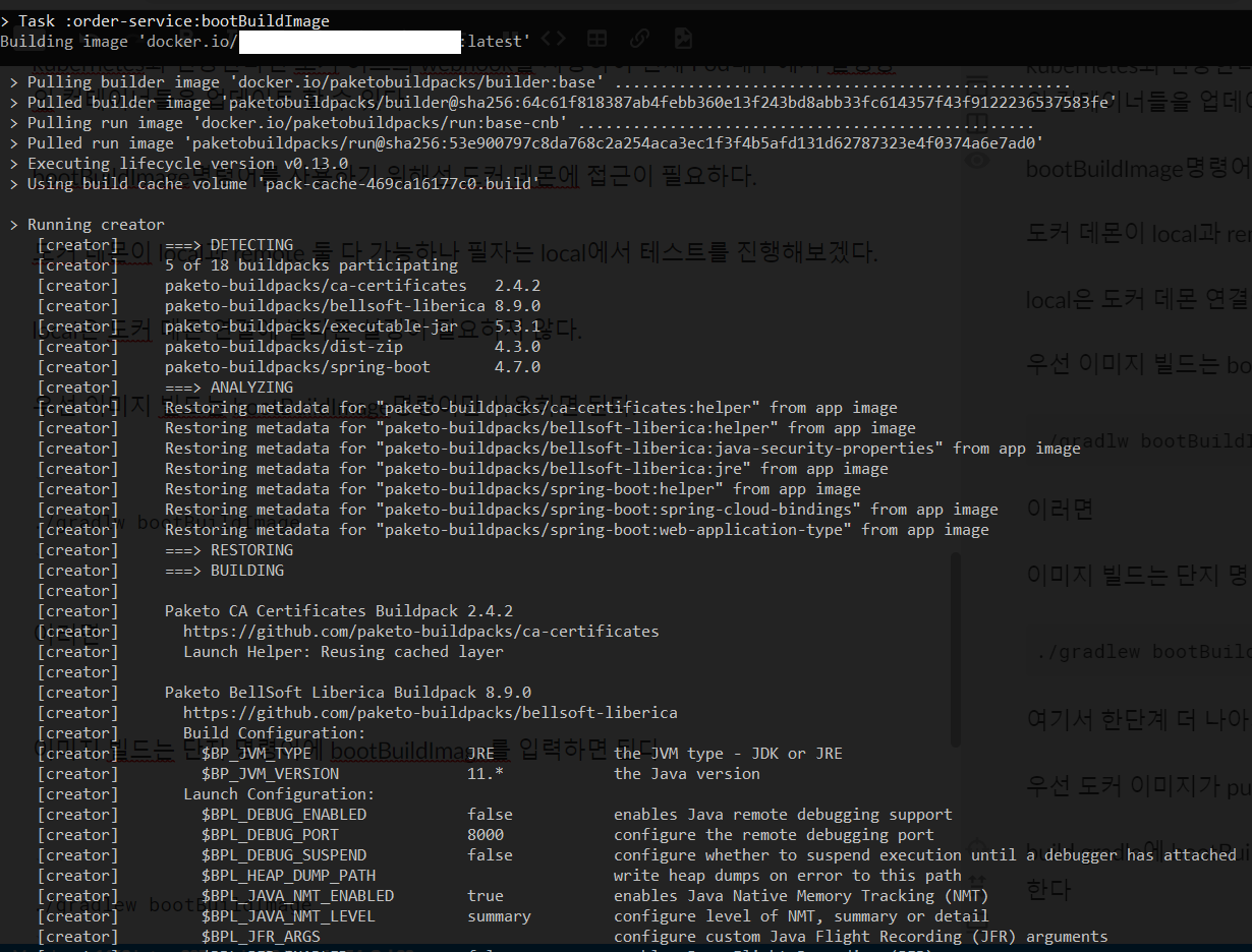 우선 이미지 빌드는 bootBuildImage명령어만 사용하면 된다.